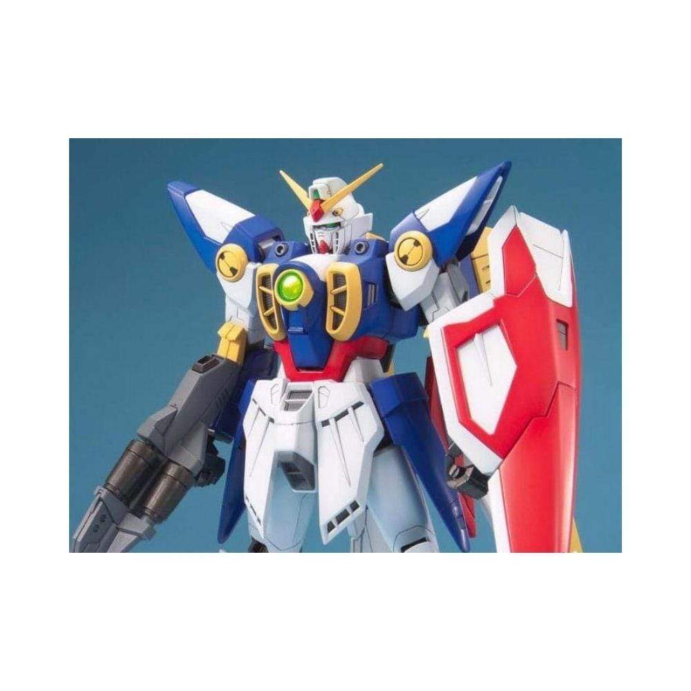 Presenting the TV version of the Wing Gundam with its full transformation gimmick recreated in the Master Grade line. Features swappable hands for holding buster rifle and beam saber. Shield opens just like the animation.