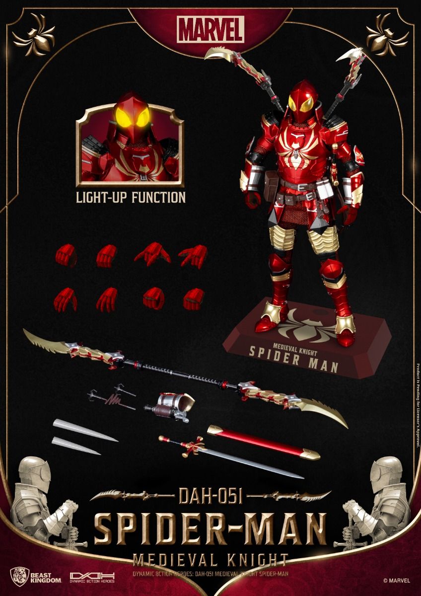 The head sculpt includes LED lights in the eyes, showing the strong characteristics of the Spiderman and Knight costume.