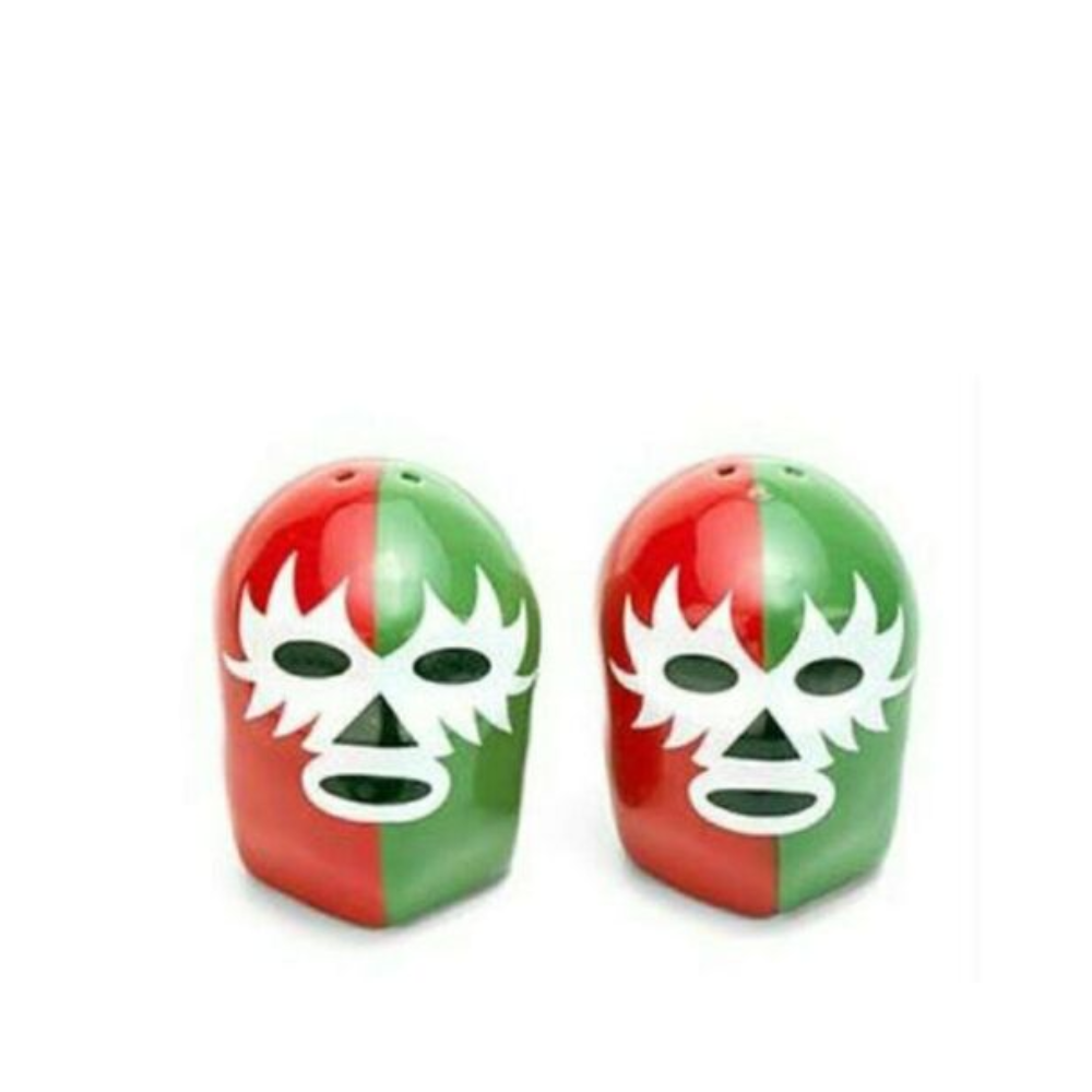 These luchadores pack a salt and pepper punch! Material: ceramic. Product: 2.05" x 2.05" x 1.65"