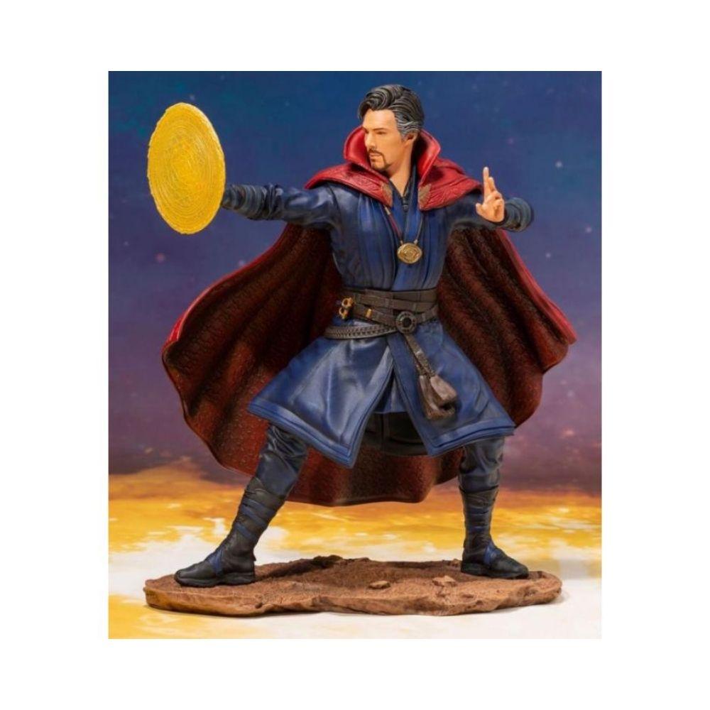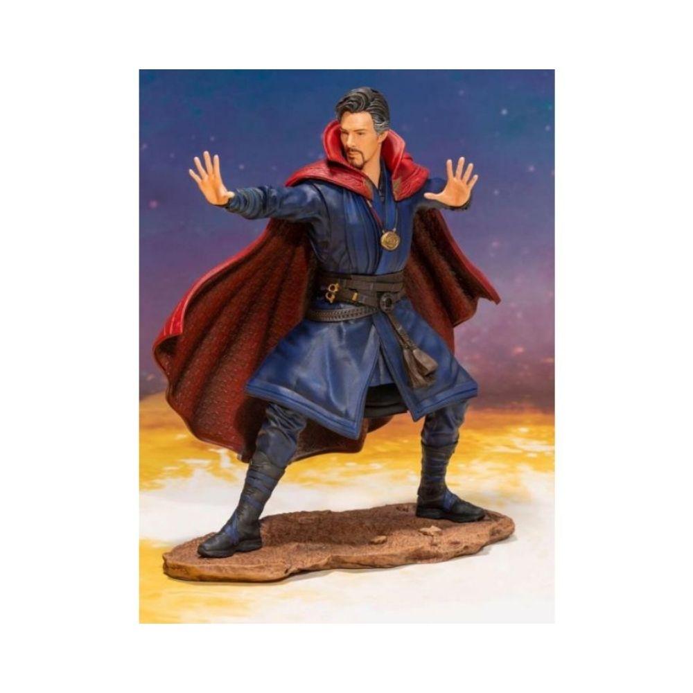 The latest character to join Kotobukiya’s ARTFX+ lineup from the record breaking and history making Marvel Studios film Avengers: Infinity War is the Sorcerer Supreme, Doctor Strange! Poised and prepared to take down the evil that threatens the fabric of the universe, no detail is left behind in the craftsmanship on the Kotobukiya Dr. Strange figure, from his flowing sorcerer’s garb to his sling ring and the Cloak of Levitation and Eye of Agamotto that play a crucial role in the film. The Dr. Strange statue comes with multiple interchangeable hand parts, allowing you to display Doctor Strange with or without a mandala in front of his right hand, and his left hand can be displayed in a spell casting pose.