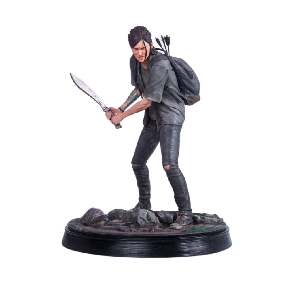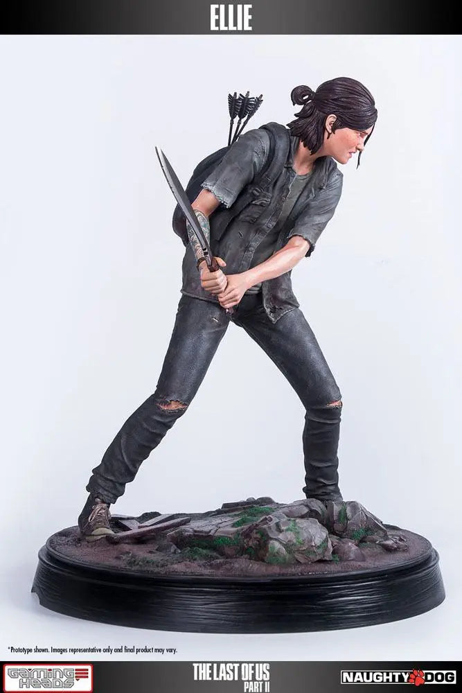 In-game files were used in creating Ellie and she stands approximately 16” tall (i.e. 1/4 scale) from the bottom of the moss-covered stone and dirt base to the top of her head. The Ellie statue is made using polystone resin and is skillfully hand-crafted and painted by artisans.
