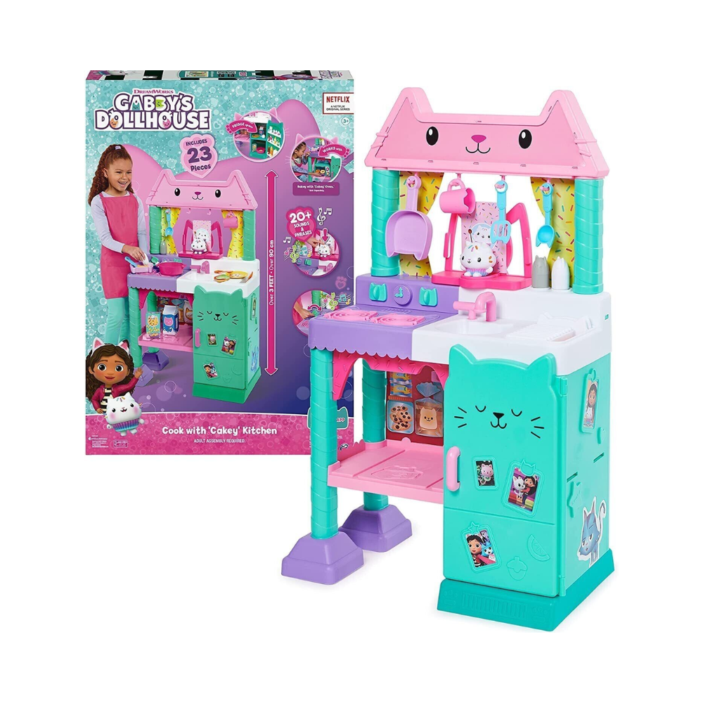 ULTIMATE PLAY KITCHEN: The Cakey Kitchen is the ultimate toy kitchen and a perfect addition to any kids playhouse. A must-have toy for girls and boys that love the Gabby’s Dollhouse series! Includes: 1 Kitchen playset, 1 cakey figure, 14 plastic pieces, 8 chip art pieces, 1 Instruction Sheet
