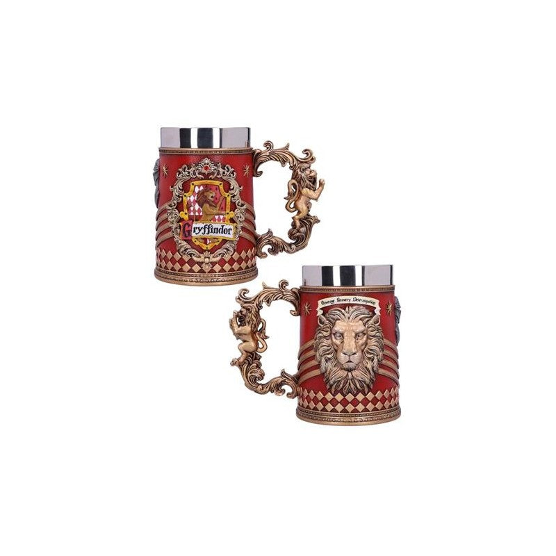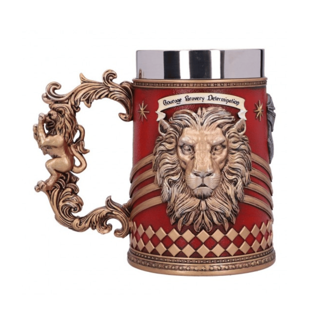 Show your passion for the finest School of Witchcraft and Wizardry in the world with this officially licensed Gryffindor collectable Tankard. Gryffindor is one of the four houses of Hogwarts School of Witchcraft and Wizardry, with students possessing courage, chivalry, and determination, usually being sorted into this house. The emblematic animal is a lion, which can be seen within the crest on the sides of this beautifully crafted piece, along with the house colours of red and gold. Cast in the finest resin before being expertly hand-painted, this collectable Tankard is the perfect addition to any wizarding collection and can be enjoyed by witches, wizards and Muggles alike.
