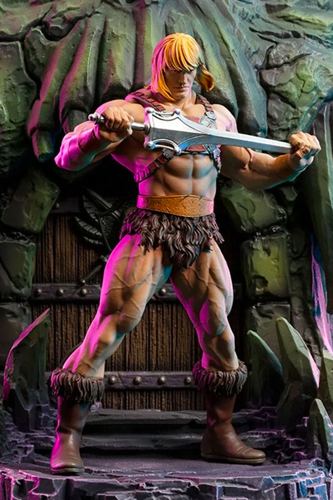 The He-Man Deluxe 1/10 Scale Statue features: • Limited edition • Based on original references • Made in polystone - (may contain parts in resin, polystone, PVC, metal and fabric) • Hand painted • Extra torso with another pose