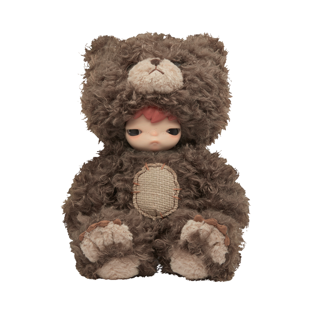 Theme: The doll is a continuation of the Hirono story, where the character finds shelter inside a bear suit, representing a protective and introspective emotional space.