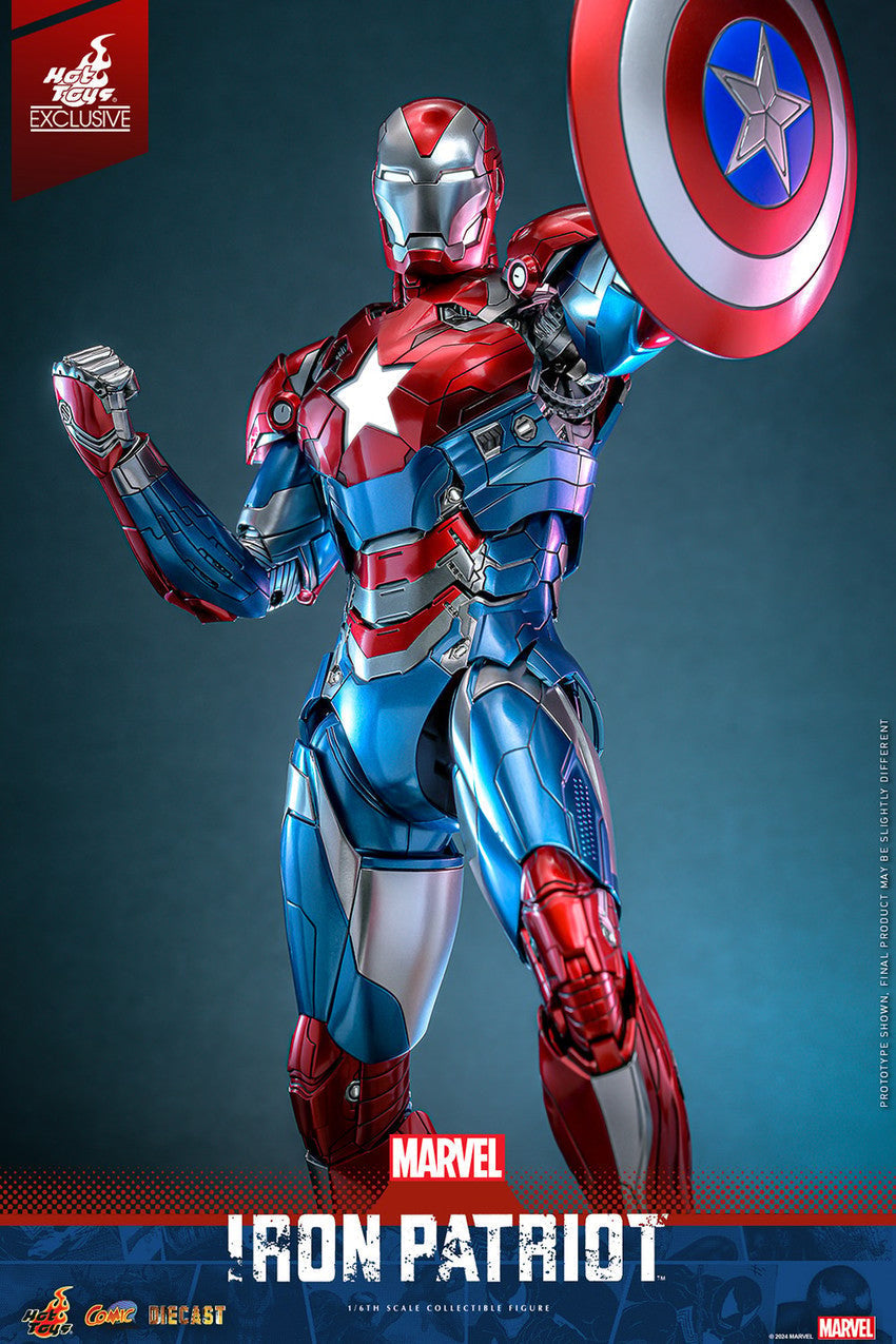 We are thrilled to present the Iron Patriot as a diecast 1/6th scale collectible figure inspired by Marvel Comics. This exclusive figure is available in a limited quantity of 3,000 units, exclusively in selected markets.