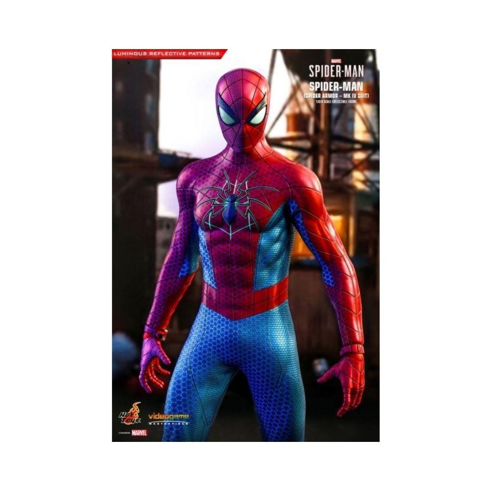 Hot Toys present Spider-Man (Spider Armor - MK IV Suit) Sixth Scale Collectible Figure! Incorporated with stunning luminous reflective web pattern which appears under specialized LED lighting exposures Hot Toys has re-created the powerful and technologically impressive Spider Armor - MK IV Suit that accentuates its visual effect with incredible details.