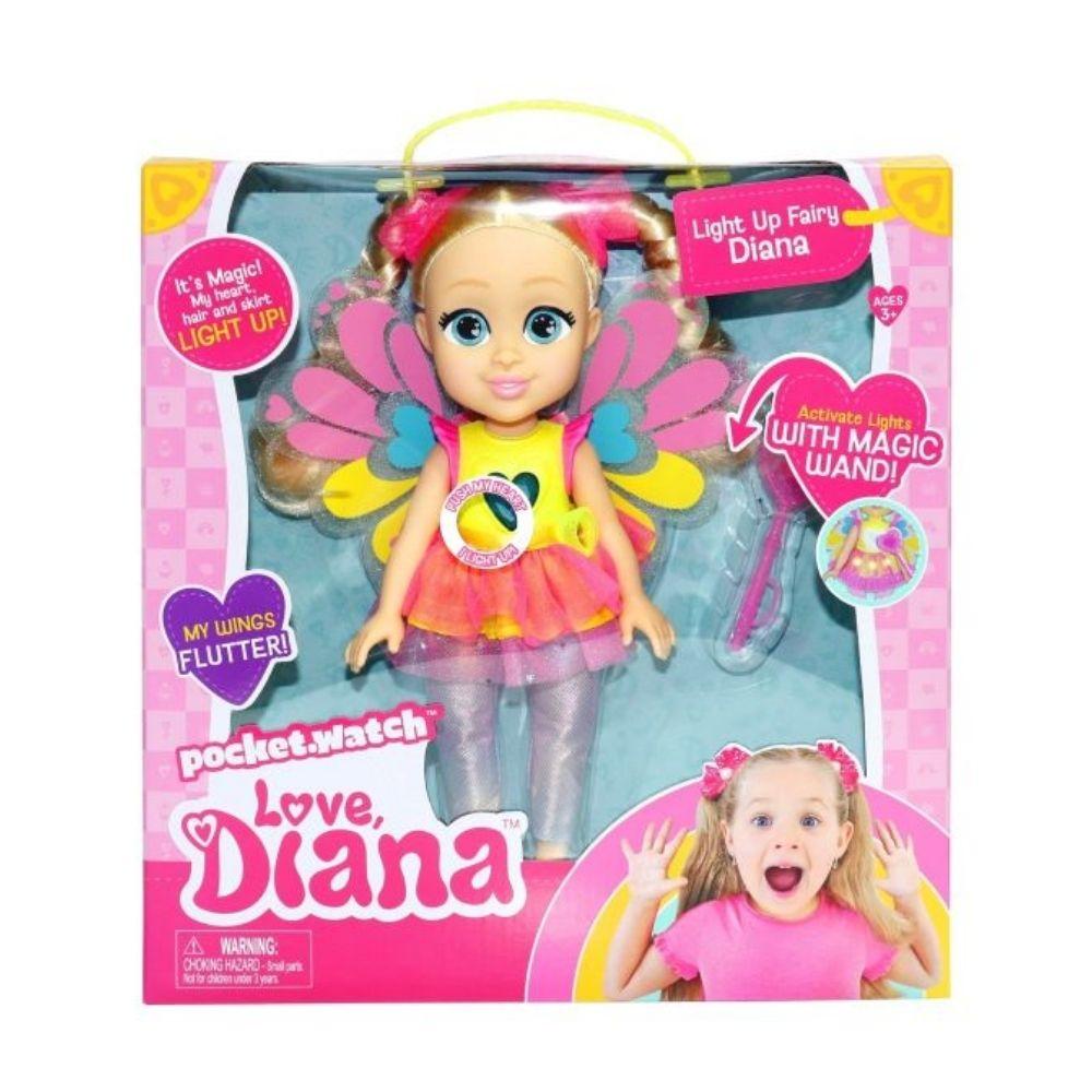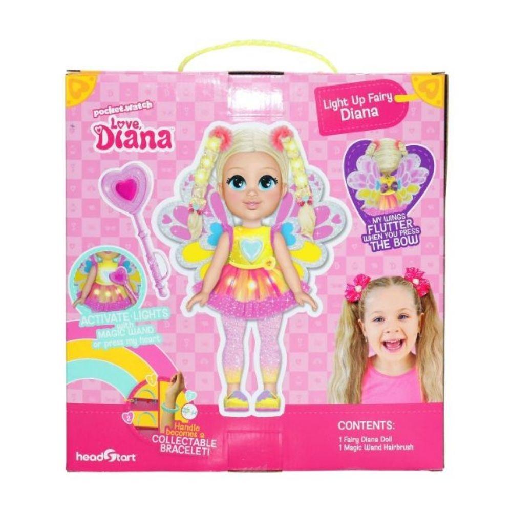 Light Up Fairy Diana is so magical! Her heart, hair and skirt all light up and her wings really flutter! Activate the light up features with the Magic Wand or by pressing Diana's heart!