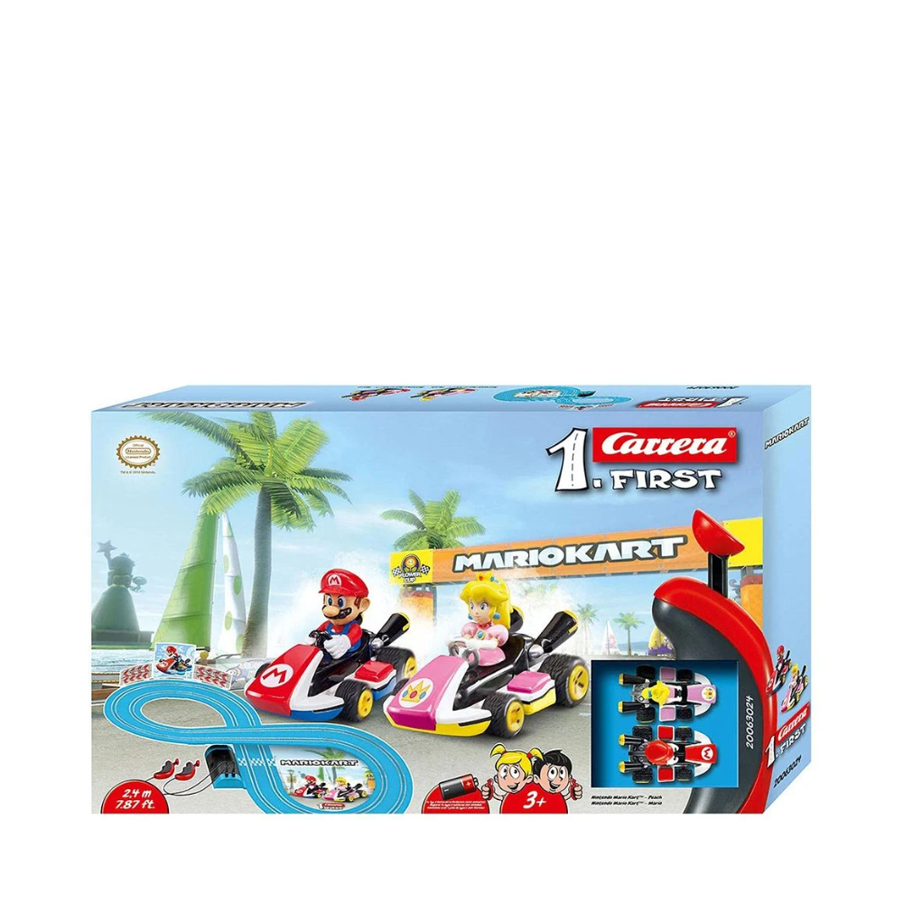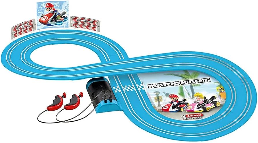 If your kids love playing Mario Kart on their Nintendo Switch, bring the track into the real world with the Nintendo Mario Kart slot car racetrack set from Carrera first. Mario and Peach sit in the driver's seats of the two lightweight plastic cars, and the cars are controlled with the two included Joysticks. Your kids and their friends can race the cars around the tracks, trying to navigate the curves and race to the finish line.