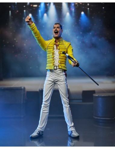 Experience the magic of Freddie Mercury with this 7" scale action figure by Neca. Complete with his iconic stage outfit and microphone, relive the energetic performances and powerful voice of the legendary Queen frontman. Perfect for any fan or collector. Long live the rock legend!