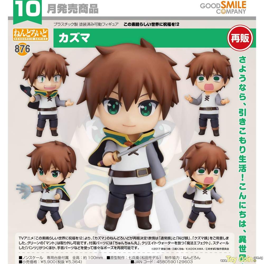 "Farewell boring life! Hello fantasy world!" From the anime series 'KONO SUBARASHII SEKAI NI SYUKUFUKU WO! 2' comes a long-awaited Nendoroid of the adventurer, Kazuma! He comes with three different face plates including a standard expression, a shouting expression with eyes that show he is going through a rather rough time as well as a more devious expression for when he makes use of dirty tricks. His green cape can be removed for a slightly different appearance, and other optional parts include his Chunchunmaru sword, magic effect parts to display him casting create water as well as the panties that he stole using the steal spell! He also comes with special hand parts to capture his more iconic poses allowing fans to recreate various poses from the series! Be sure to display him with the previously released characters from the series!