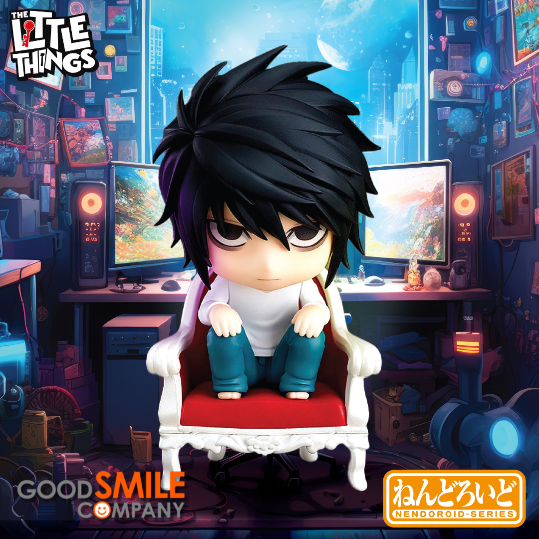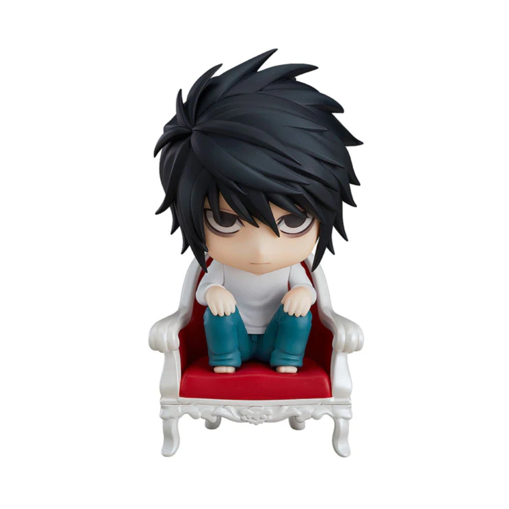 From the popular manga series "DEATH NOTE" comes a rerelease of the updated version of Nendoroid L! He comes with three face plates including his standard expression, his thinking expression often seen while he is biting his nails and his smiling expression.