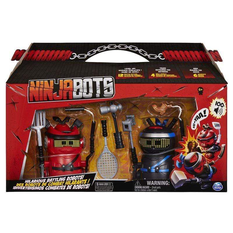 • HILARIOUS BATTLING ROBOTS: This set includes 2 Ninja Bots – Red Dragon and Black Tiger! Each Ninja Bot’s silly personality comes to life with its own set of weapons and over 100 sounds and movements!