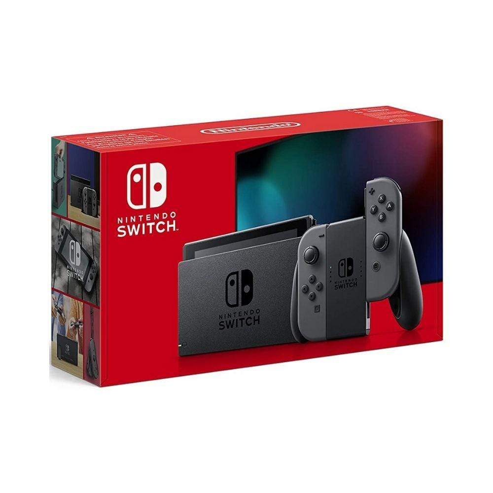 - Nintendo Switch console with Grey Joy-Con (L) and GreyJoy-Con (R) controllers
