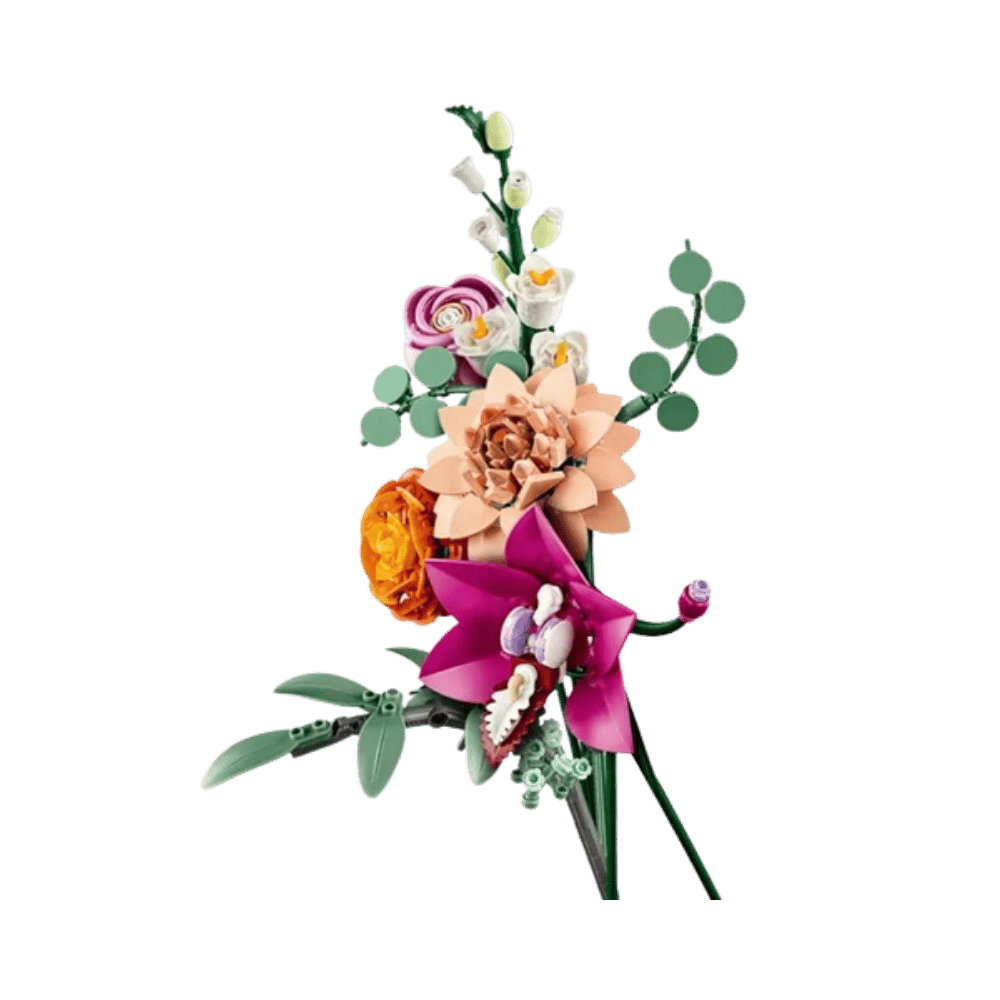 - LEGO flowers – The set features 15 buildable flower stems, including daisies, cornflowers, eucalyptus, elderflowers, roses, ranunculus, cymbidium orchids, a campanula and a waterlily dahlia