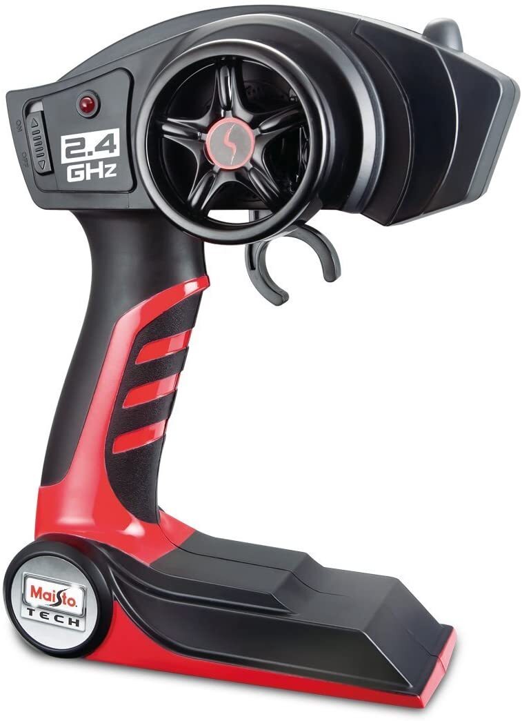 This is a big, big RC off-road pickup. Authentic Ford Raptor, approx. 28″ long, 2.4 GHz for top performance, up to 4 players can drive at one time and place, 35 metre control range, pro-style controller with proportional speed control, rapid electronic battery charger (included), steering alignment adjustment, vehicle uses 6.4v lithium rechargeable battery (included), controller uses 2 AA batteries (included). Pictures indicative only
