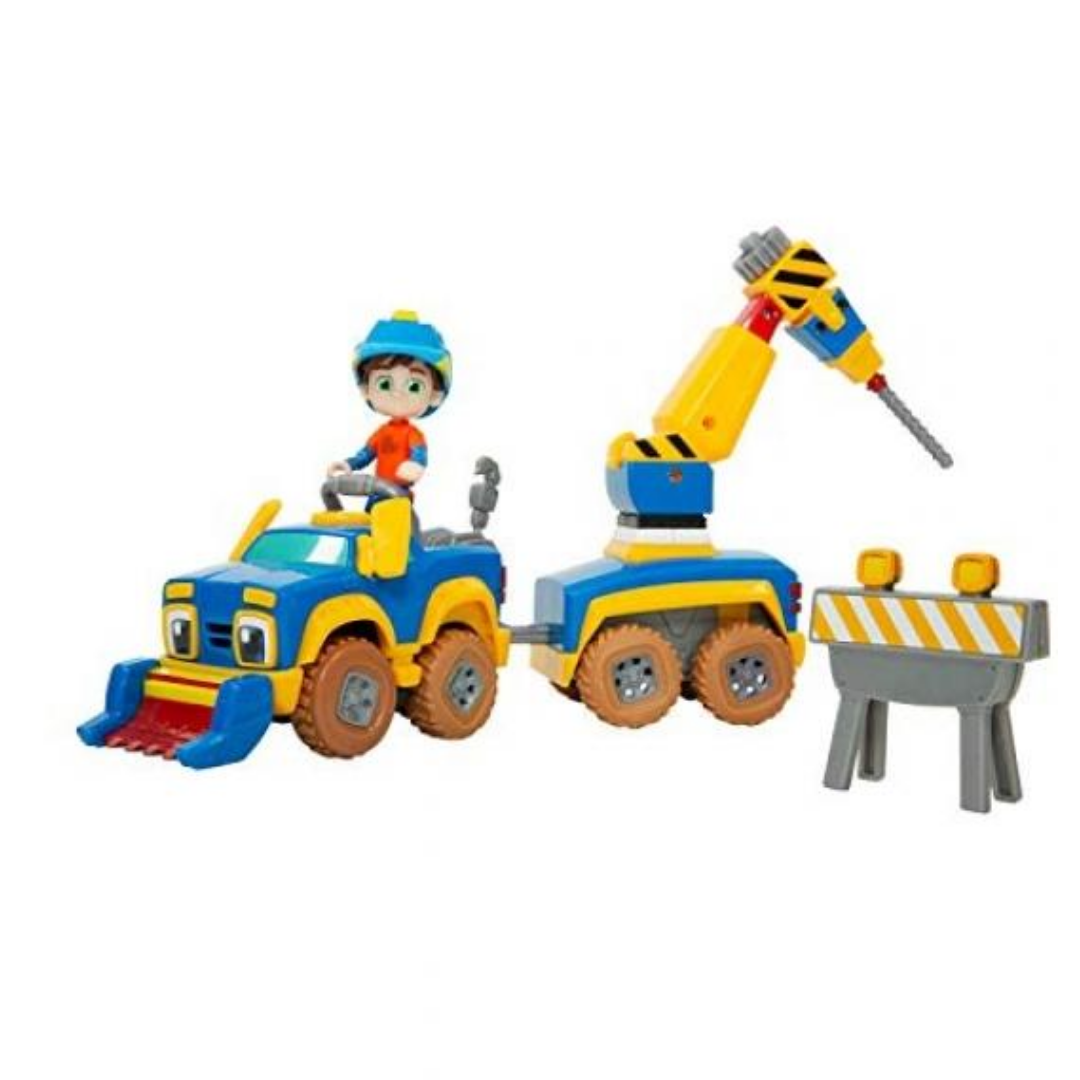 Enjoy the fun of connection and different accessories. Press the button to activate power up vehicle. When it moves forward, the drift will move up and down. Includes 3'' Rev figure, 1xremovable shovel and 1x road accessory.