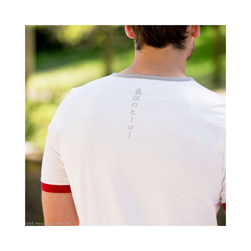 In the "CULT EDITION" section of our brand IKI By Tsume, the back of this T-Shirt features Saitama as he appears in the anime right after his fight with Boros, with the name of the episod in japanese, "The strongest hero". Saitama's punch is printed on the chest.