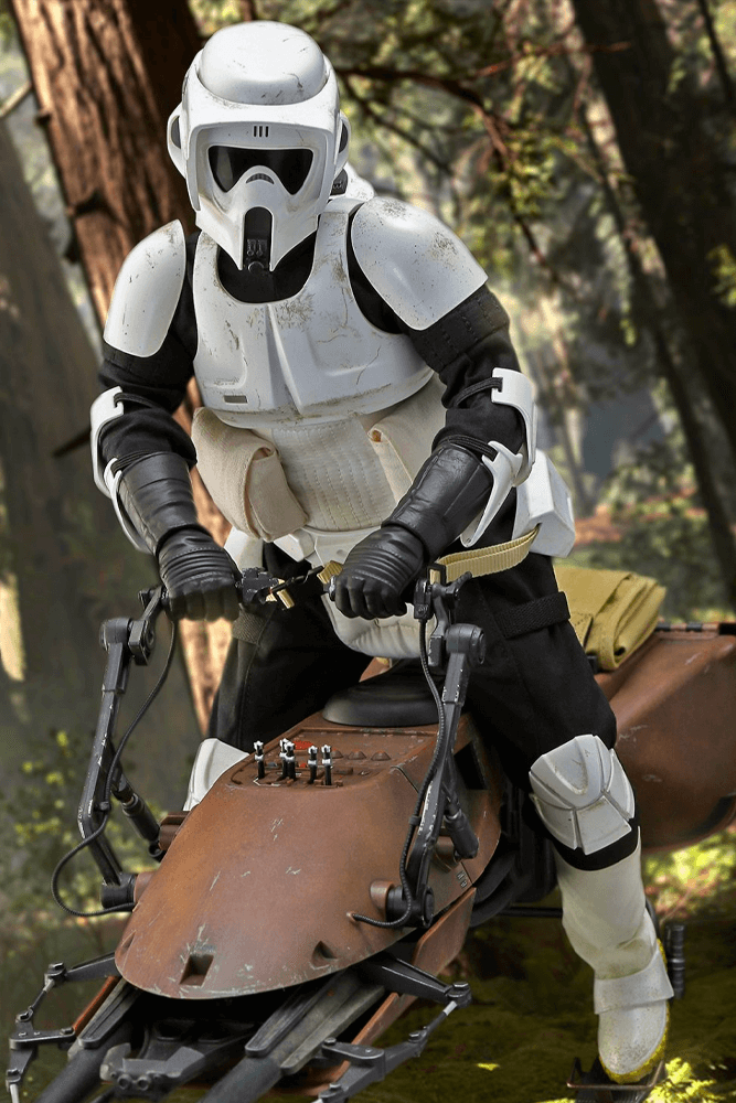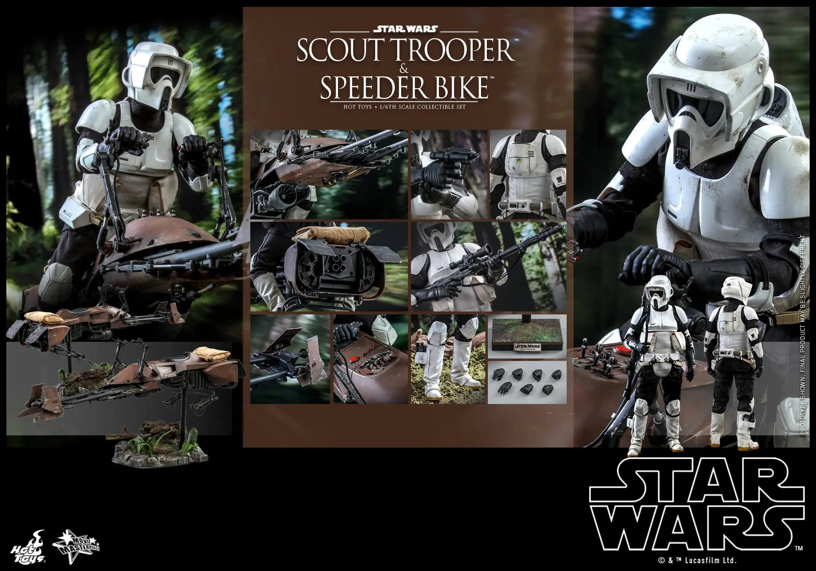 Hot Toys are thrilled to expand the popular Star Wars collectibles line up and officially present the Scout Trooper and Speeder Bike Sixth Scale Collectible Set from Star Wars: Return of the Jedi!