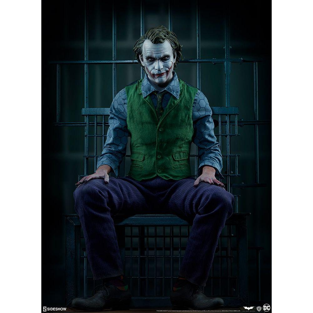 The Joker Premium Format Figure measures 20” tall and captures every chilling detail of Heath Ledger’s haunting performance as the Clown Prince of Crime himself. Based on the Gotham City police department scene from the film, this collectible includes a detailed environment base with jail bars that can be magnetically placed in front of or behind the figure for multiple display options.