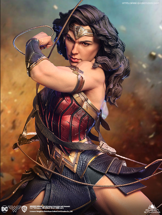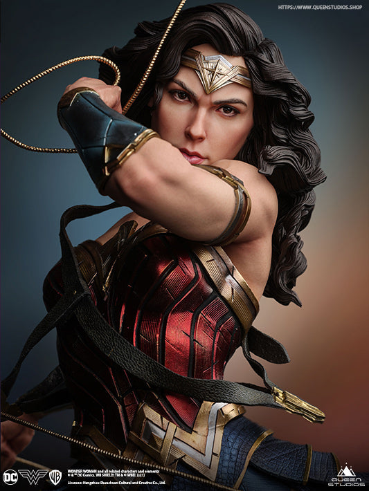 The Wonder Woman 1/4 statue recreates one of our favourite heroines from DC comics with a twist. For this limited edtion statue, we will include two head sculpts. The first being a traditional head sculpt inspired by DC Comics. The second, a theatrical head sculpt, capturing the likeness of Wonder Woman actress Gal Gadot with incredible accuracy in a comics style.