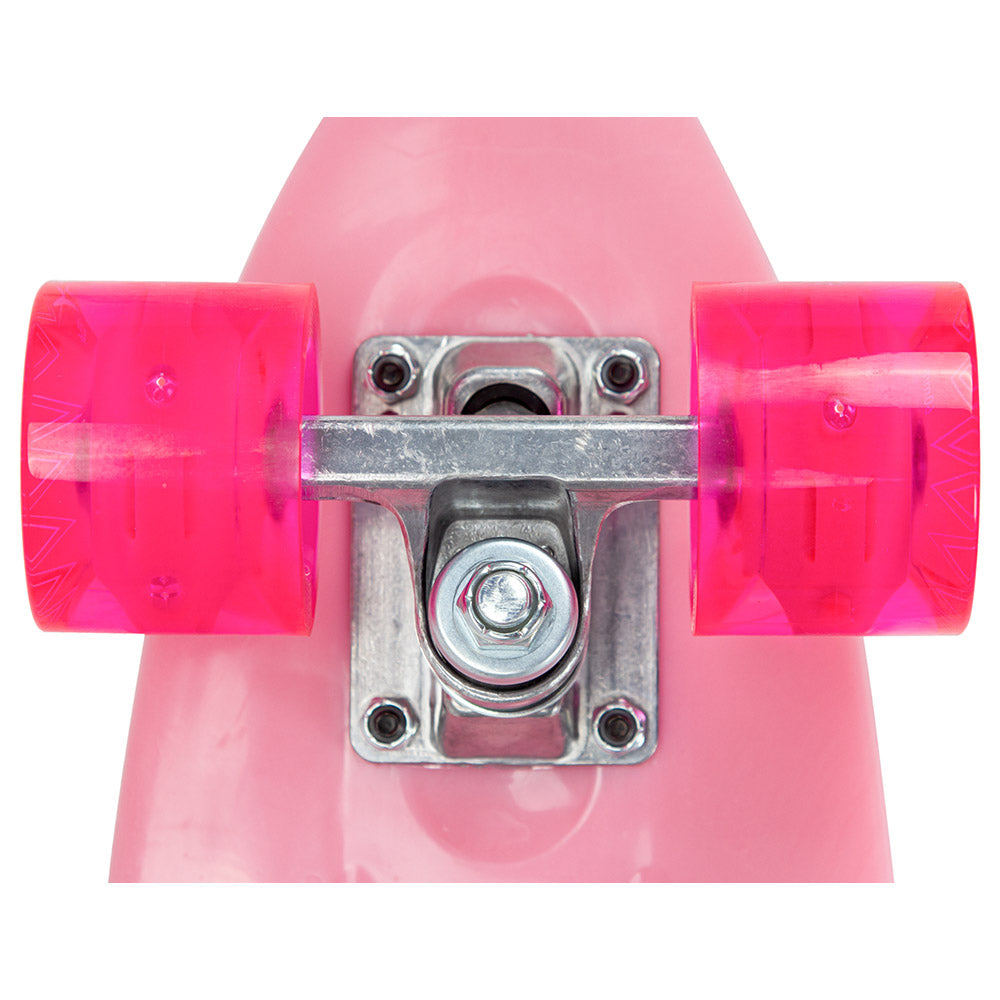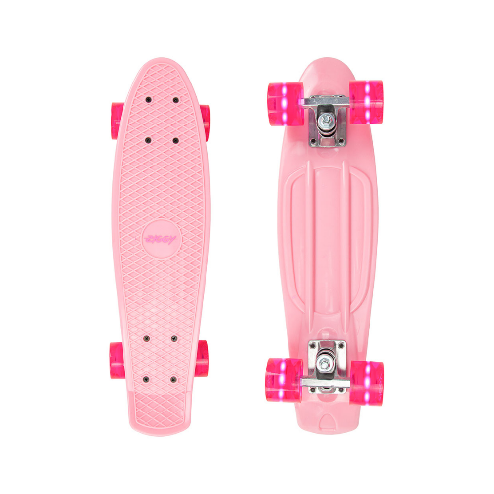 Description: Developed by our team of skaters, this little skateboard is perfect for kids who are learning how to ride or just adding another skateboard to their collection. The colour matched light up wheels add oodles of fun and make it exciting for kids to get zig-zagging around before they know it. The standard 22" size is perfect for most people and is easy to fit in a backpack to carry around town.